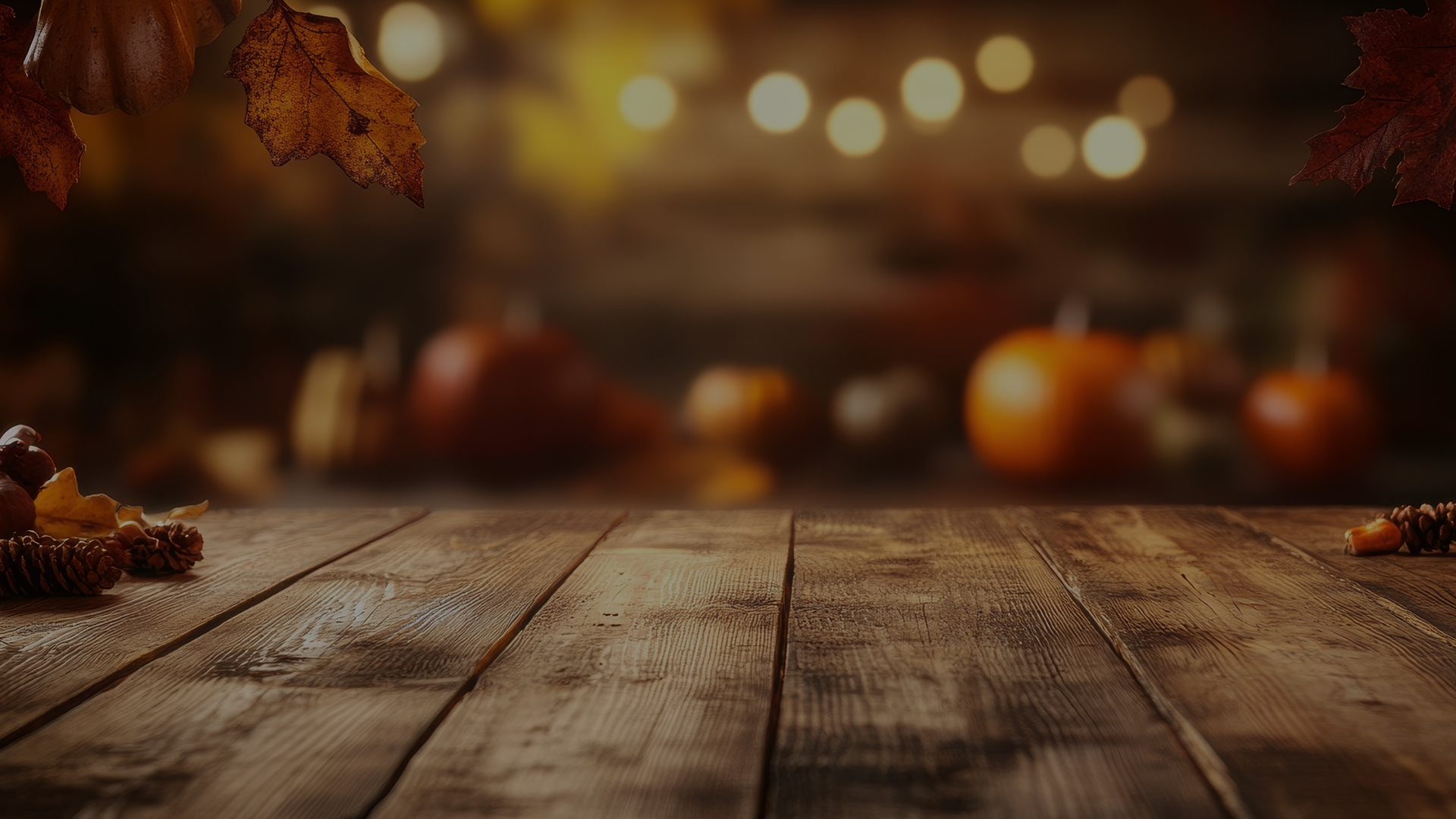 wooden table top with fall decorations