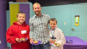 Dad and two sons at Donuts with Dad